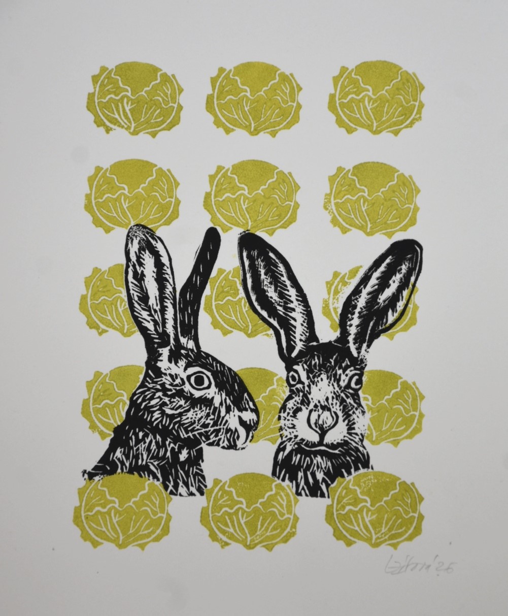 Zajíci v zelí - originál linorytového tisku